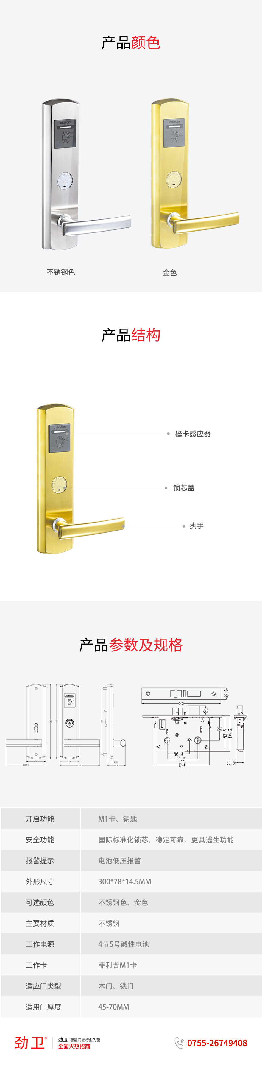 酒店门锁丨酒店锁丨劲卫智能门锁D1系列