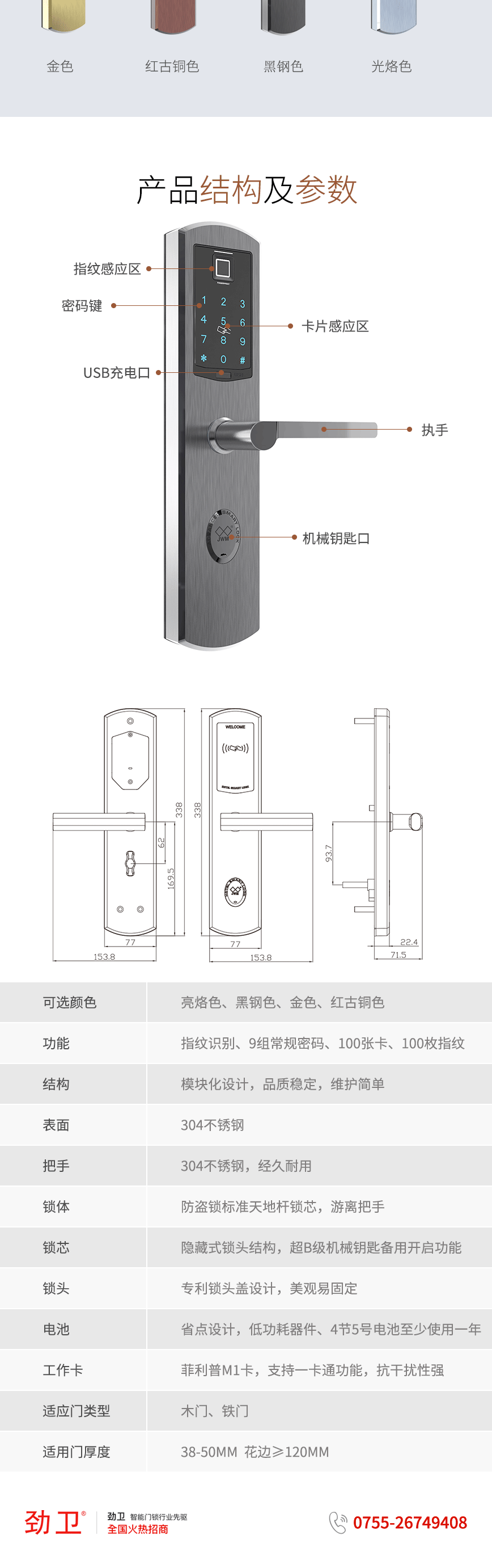 适合场景:家用、办公室功能:指纹开门、密码开门、一次性密码、APP开门、房卡开门、钥匙开门