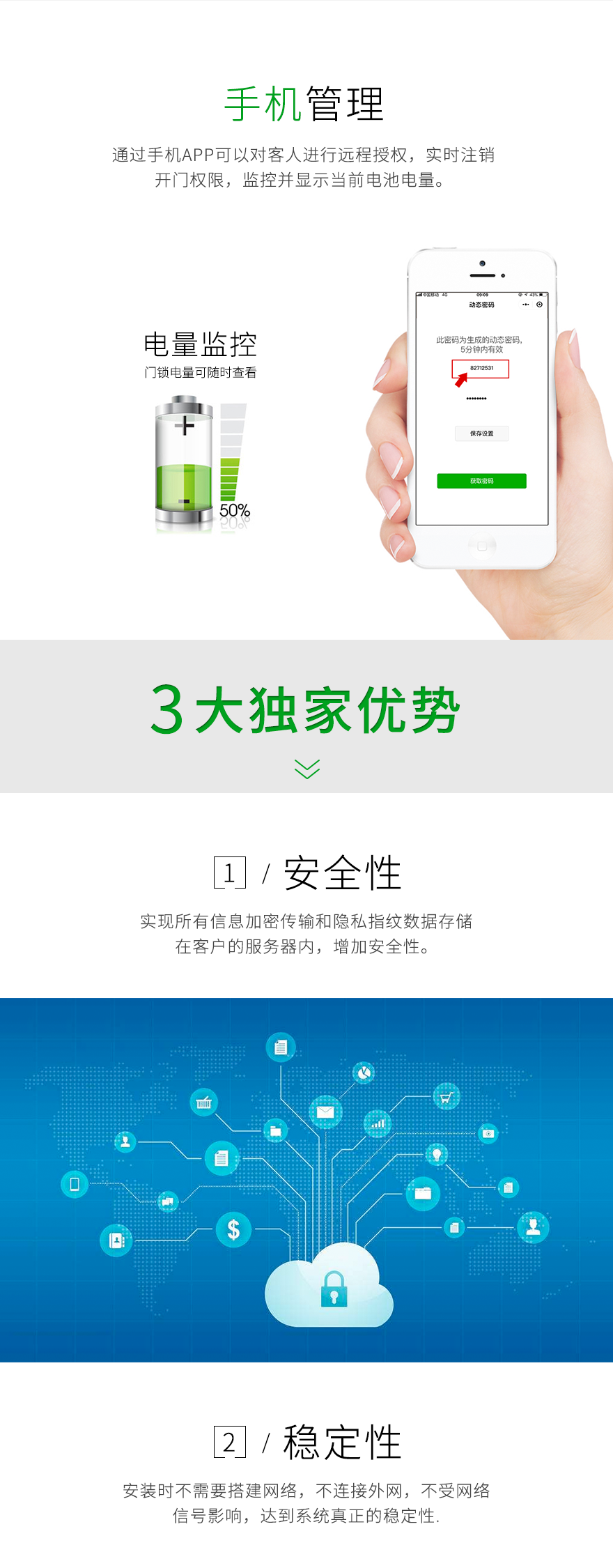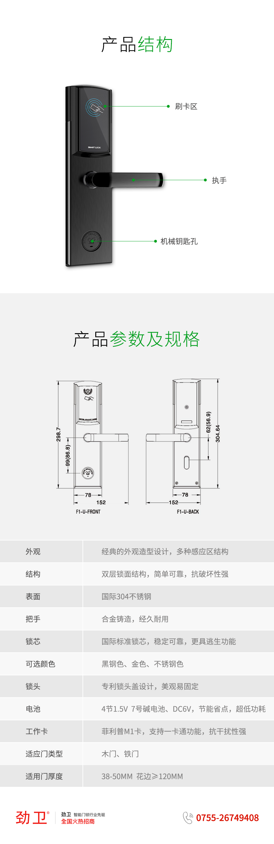 基本功能:微信开门丨手机APP开门丨扫一扫二维码开门丨房卡开门丨钥匙开门