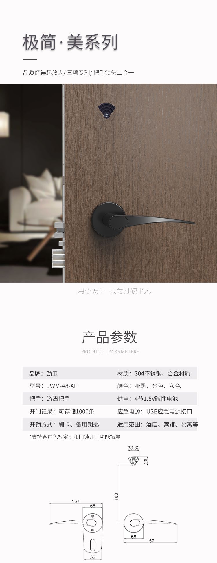 特殊结构:把手钥匙,游离把手,新一代分体式门锁