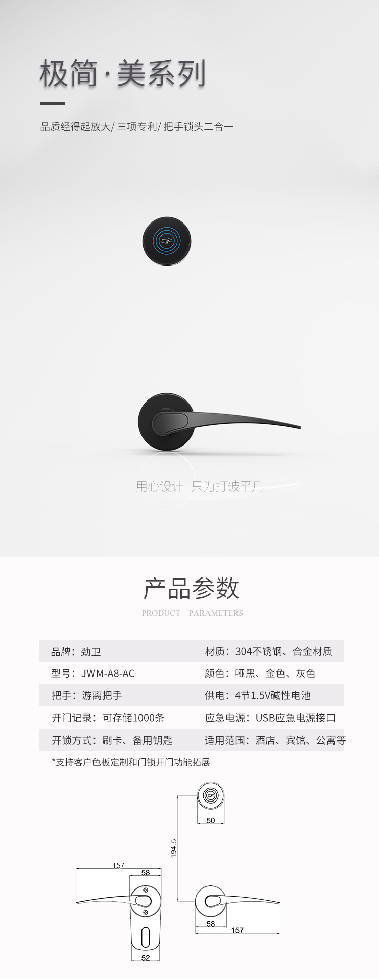 特殊结构:把手钥匙,游离把手,新一代分体式门锁
