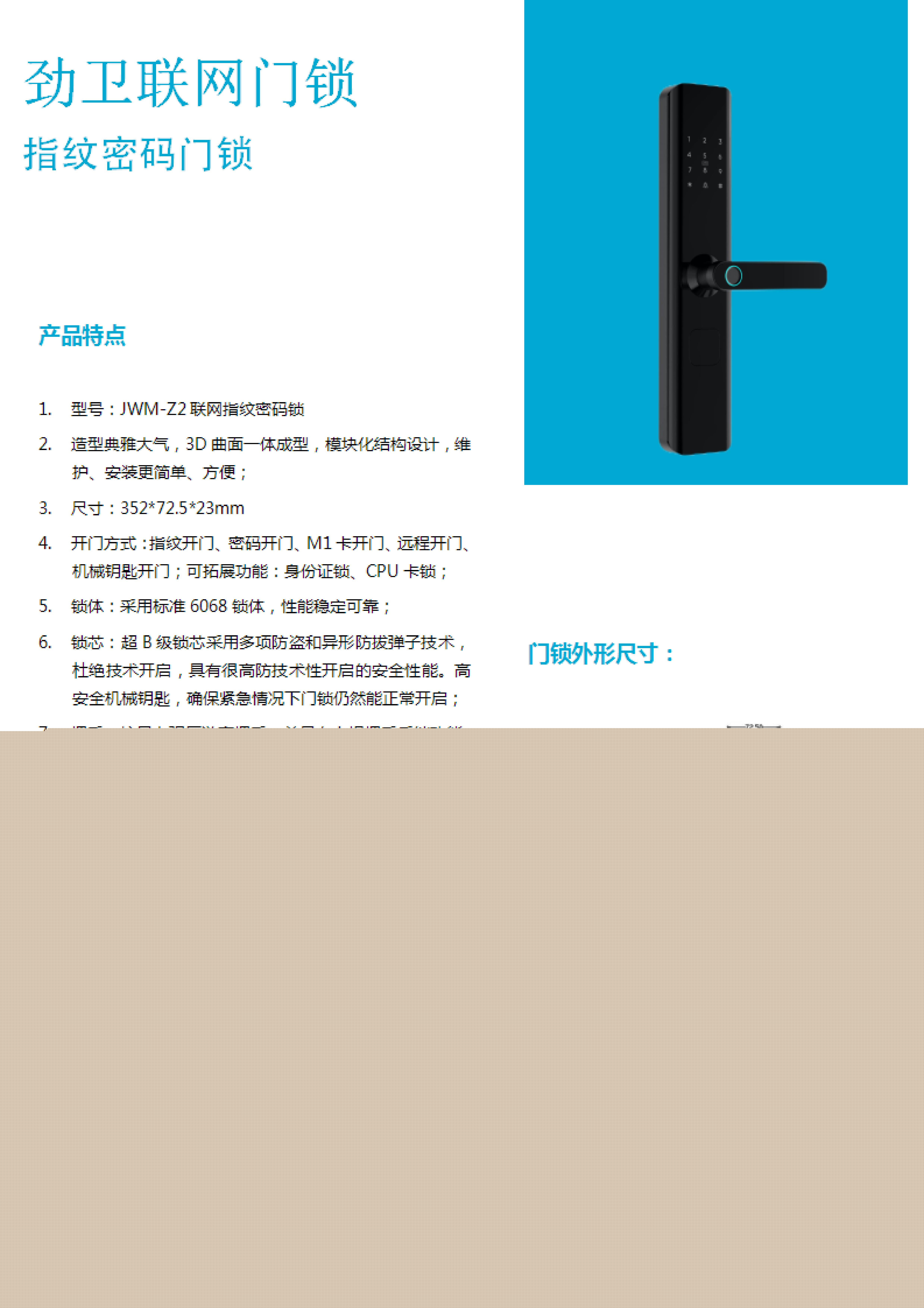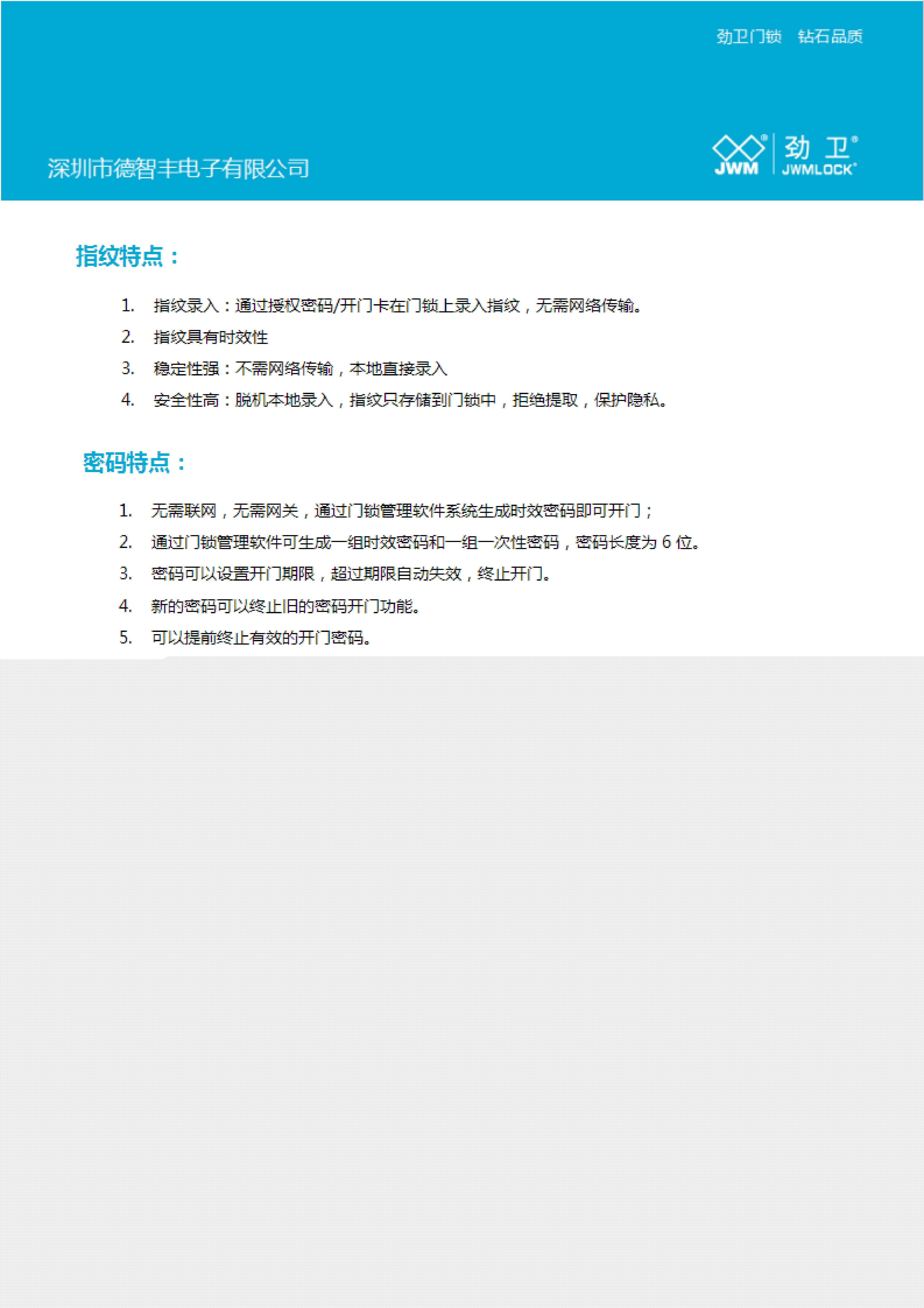 适合场景:家用、办公室功能:指纹开门、密码开门、远程临时密码开门、房卡开门、钥匙开门
